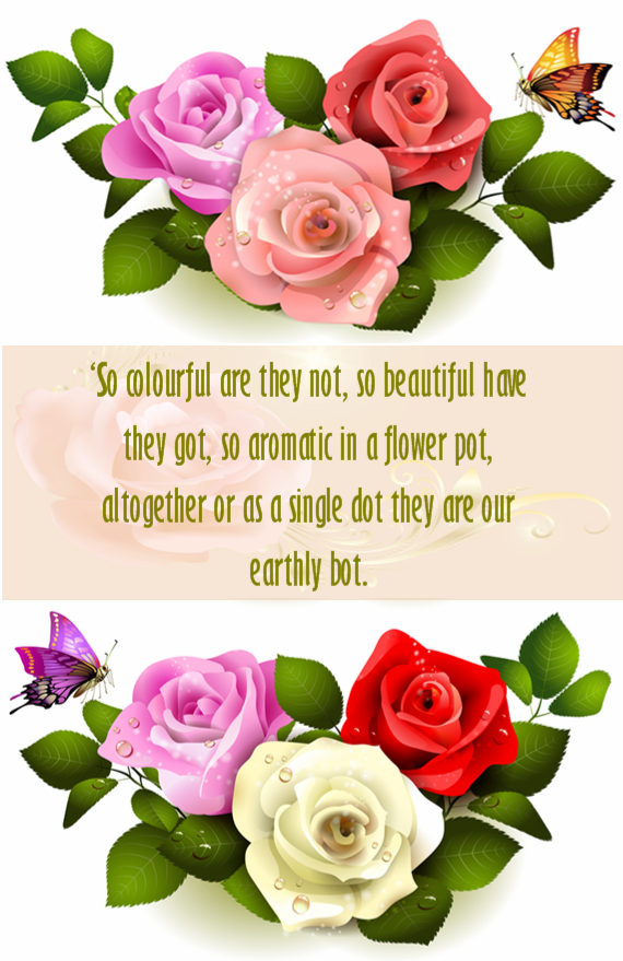 ‘So colourful are they not, so beautiful have they got, so aromatic in a flower pot, all together or as a single dot they remain our earthly bot.’